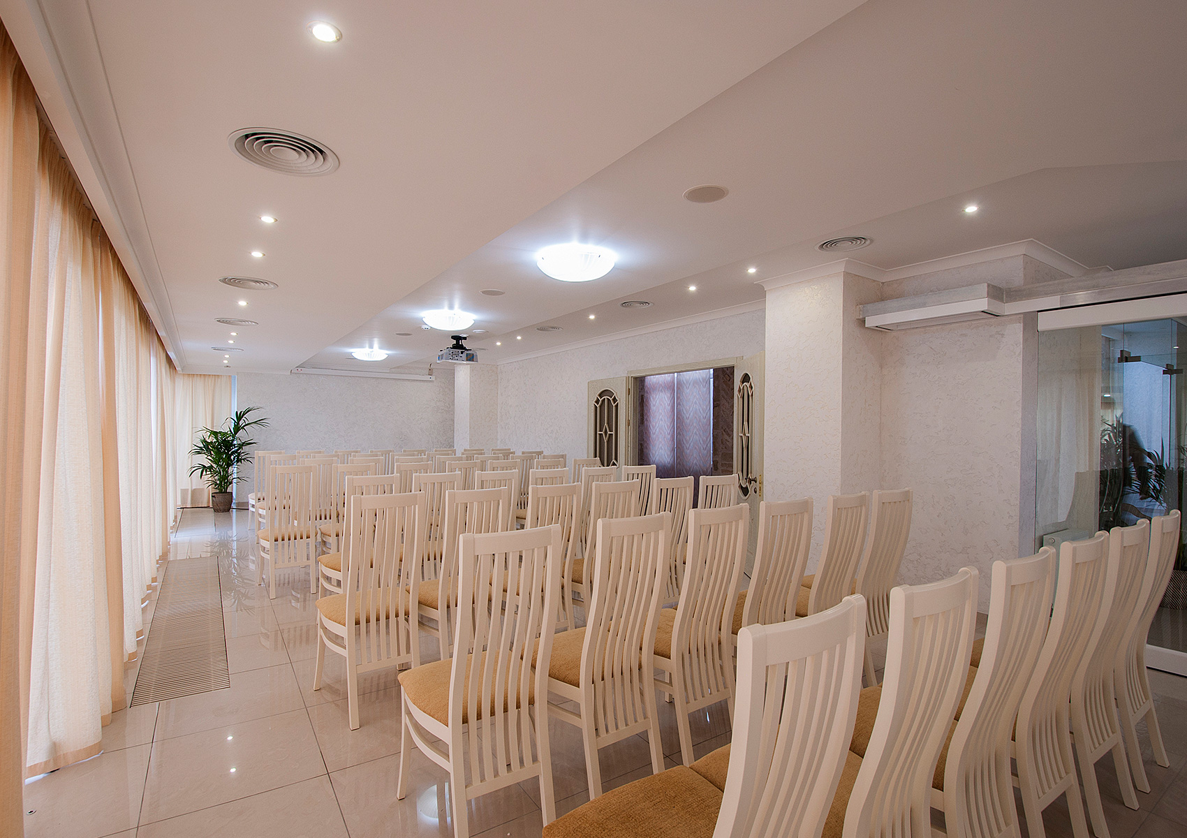 Местной деловой среде и гостям отеля, которые желают совместить отдых с деловым мероприятием, наш отель предлагает воспользоваться современным конференц-залом «Ахиллеон», оборудованным всей необходимой техникой для проведения конференций, брифингов, деловых встреч и прочих видов мероприятий.